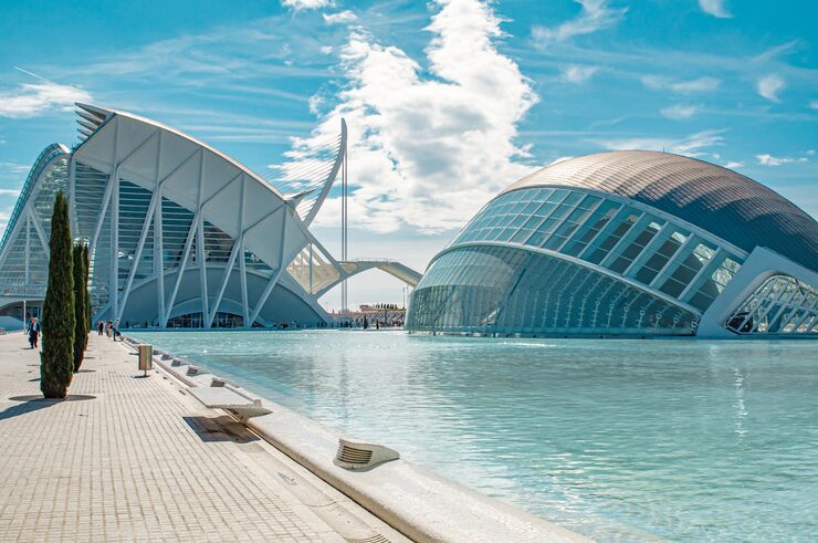 Barcelona is one of Europe’s most visited cities, while Valencia offers a similar coastal experience with fewer tourists. The city combines beaches, historic architecture, and modern design, including the futuristic City of Arts and Sciences.